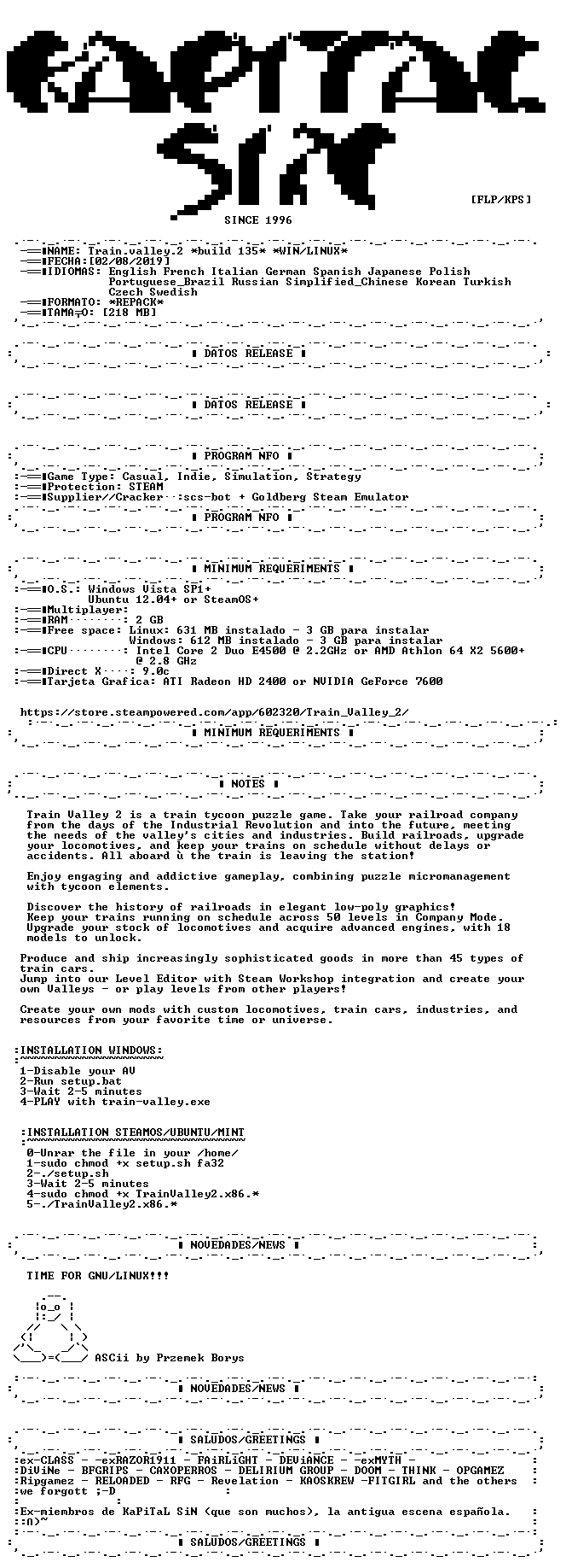 https://filecrypt.cc/Container/8A359632DF.htmlhttps://store.steampowered.com/app/602320/Train_Valley_2/NFO