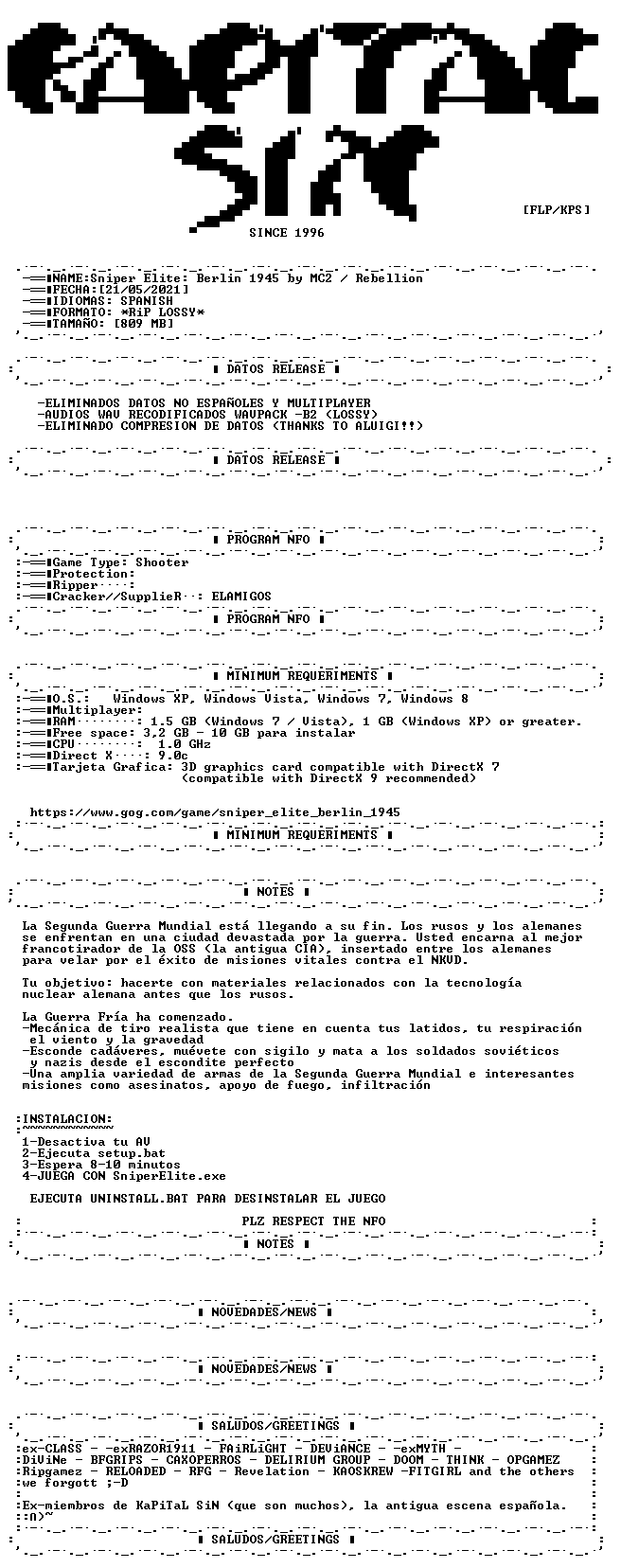 Re:Sniper Elite: Berlin 1945 *RiP LOSSY* *SPANISH*