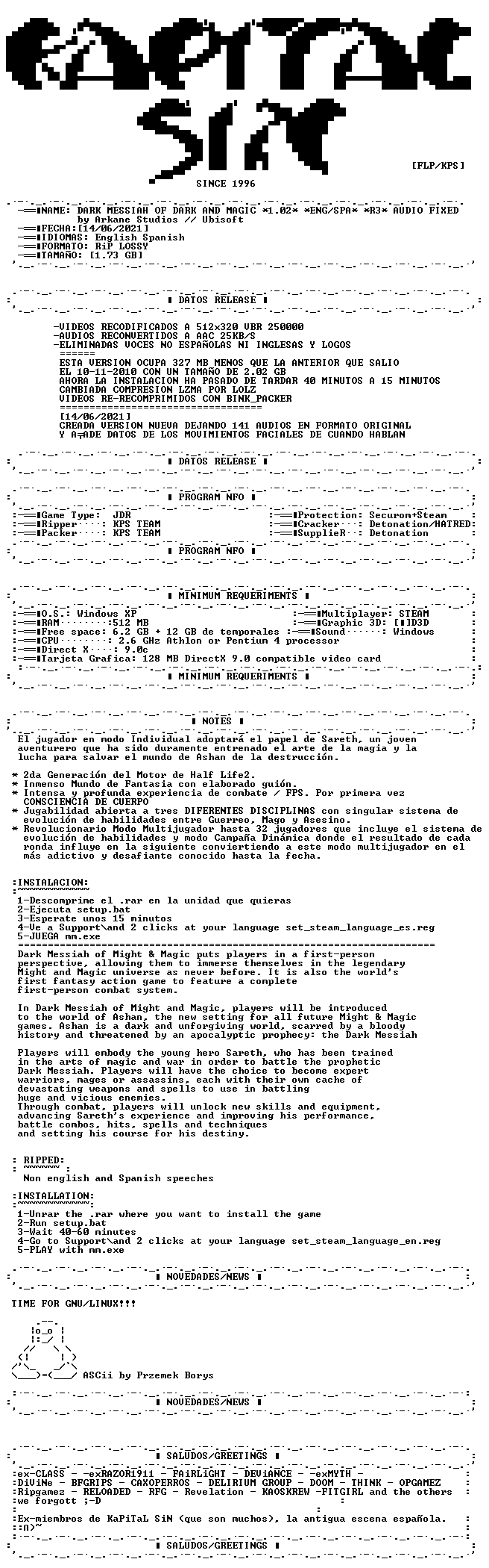 Autor Tema: DARK.MESSIAH.OF.MIGHT.MAGIC *v1.02* *ENG/SPA* *RiP LOSSY* *R3* *PLUS AUDIO FIX  (Leído 3606 veces)