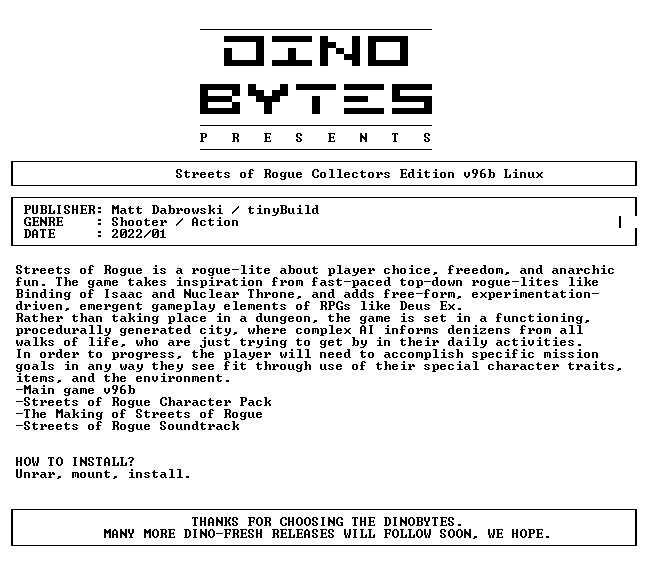 DOWNLOADhttps://mirrorace.org/m/3Mq2ahttps://www.gog.com/game/streets_of_rogueNFO