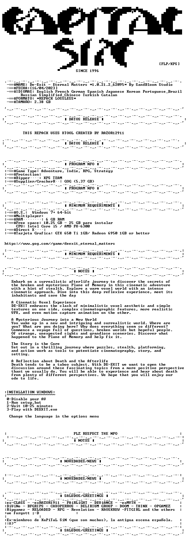Autor Tema: De-Exit - Eternal Matters *v1.0.21.2_62095* *MULTI 11* *REPACK LOSSLESS*  (Leído 895 veces)