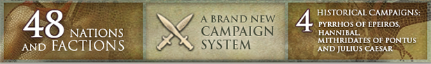 Campaign mode allows you to rewrite history as you play through the battlefield careers of some of ancient history’s greatest generals, or war with any ancient nation against any other. Each victory increases the experience and elan of your core units. Quick to resolve strategic decisions allow you to go straight from one battle to the next without any delay.
