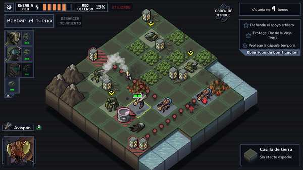 Defiende las ciudades: Los edificios civiles suministran energía a tus mechs. ¡Defiéndelos de los vek y ten cuidado al disparar!