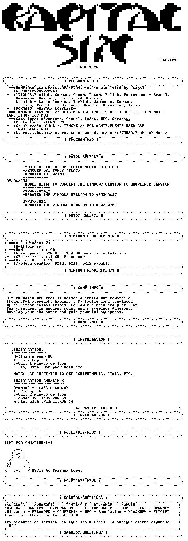 Placement has a huge impact on your items – find the right spot in your backpack to increase their power! Explore ancient dungeons, caves, swamps, and more! Meet colorful friends and fight deadly foes! Don't get lost!