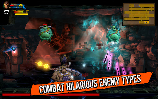 Angelitos pedorros y cosas con dientes que no deberían tenerlos: Enfréntate a los típicos orcos, duendes, plataformas con armas flotantes, espíritus sobrenaturales y puertas armadas.