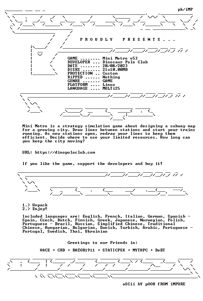 Release Name: Mini.Metro.v53.Linux.MULTi25-OUTLAWS