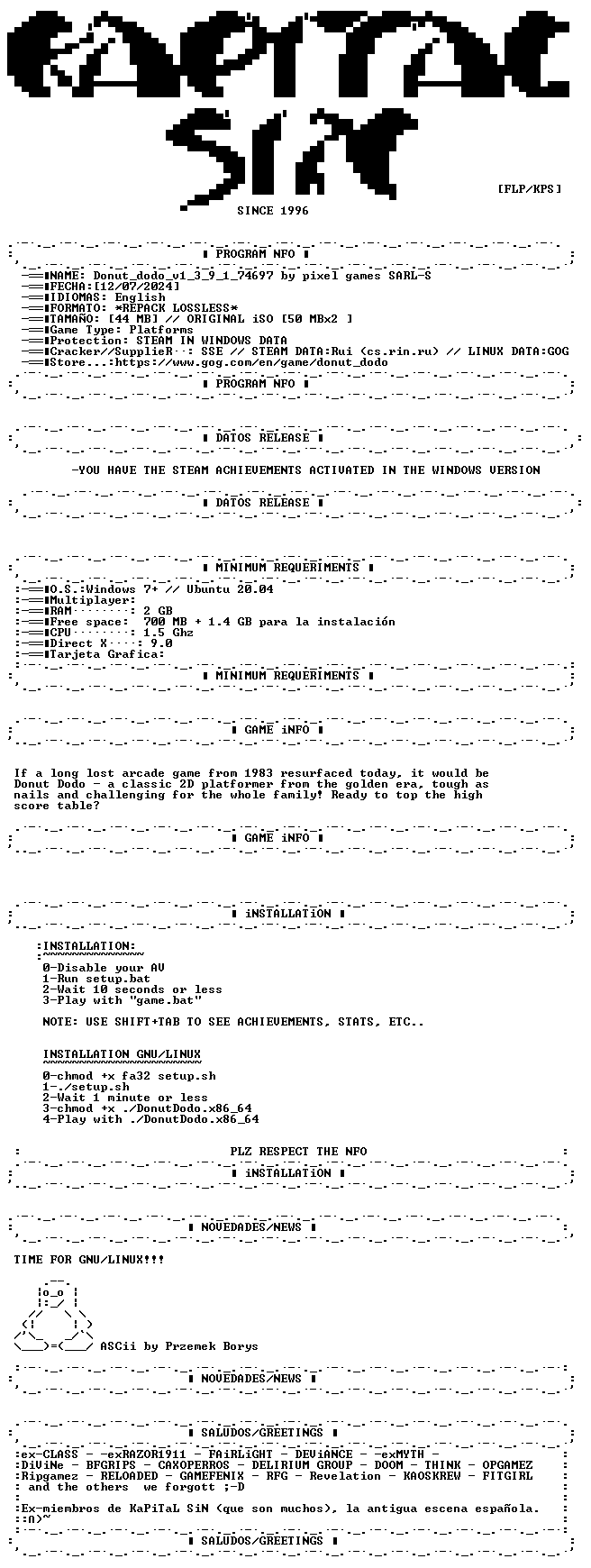 Donut Dodo is a light-hearted arcade game, reminiscent of the beloved classics from the early 80's that we still cherish to this very day. You play as Baker Billy Burns, who has to run, jump, and climb to outwit Donut Dodo and his bunch of clueless minions. Your goal is to collect all donuts in each level, in the best possible time!