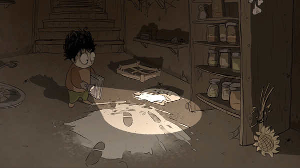 Hand-drawn art that perfectly reflects the mood of an old, grim cellar with a little bit of dark humor.