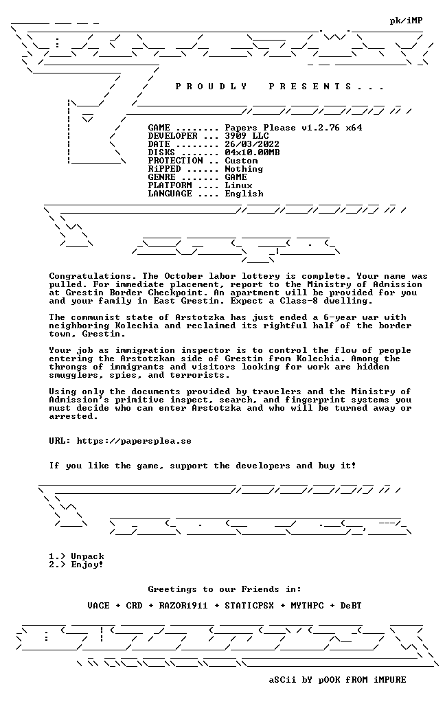 Version: 1.2.76DOWNLOADhttps://mirrorace.org/m/15ijphttps://www.gog.com/game/papers_pleaseNFO