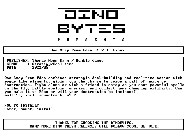 DOWNLOADhttps://mirrorace.org/m/4tsoohttps://www.gog.com/game/one_step_from_edenNFO