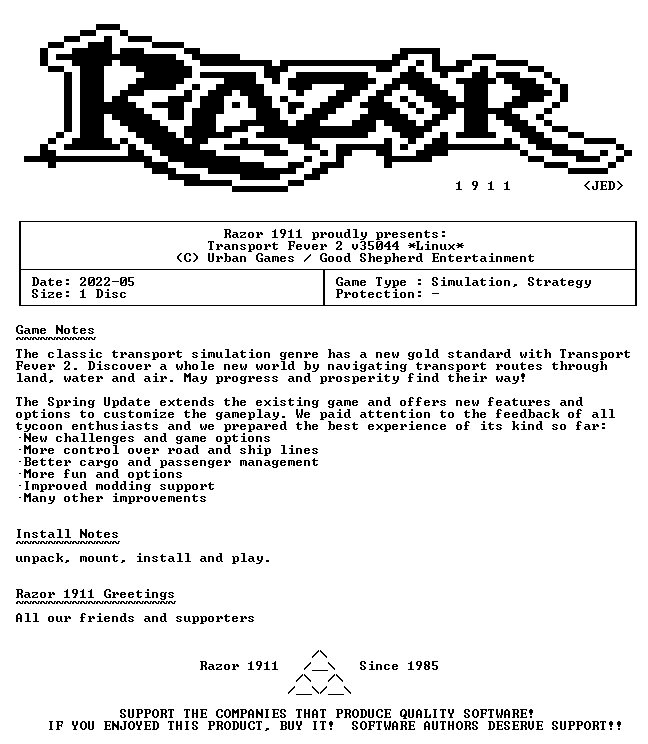 Autor Tema: Transport_Fever_2_v35044_Linux-Razor1911  (Leído 1088 veces)