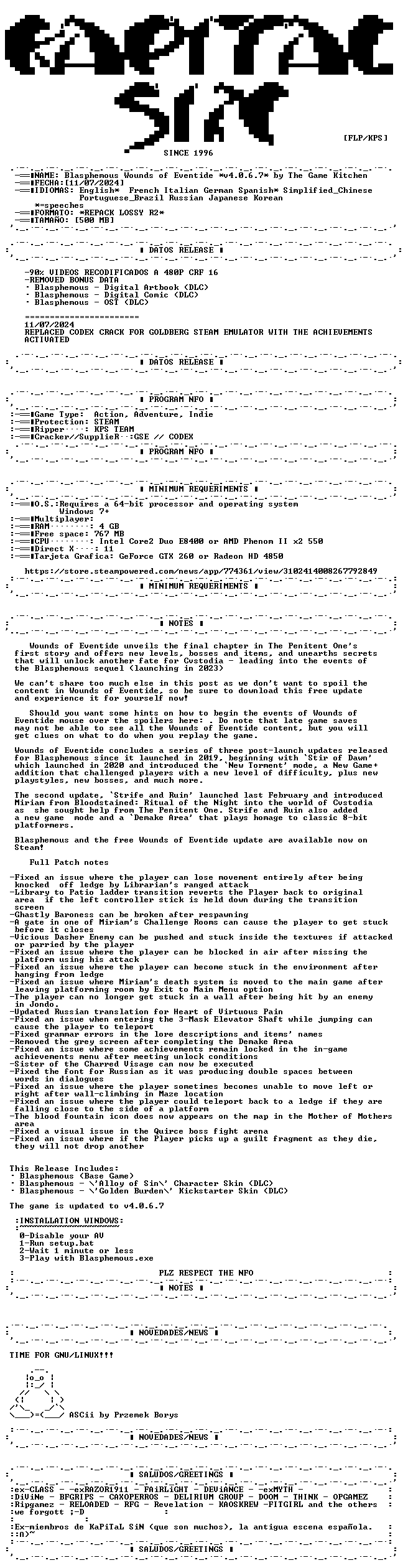 https://store.steampowered.com/app/774361/Blasphemous/https://store.steampowered.com/news/app/774361/view/3102414008267792849NFO