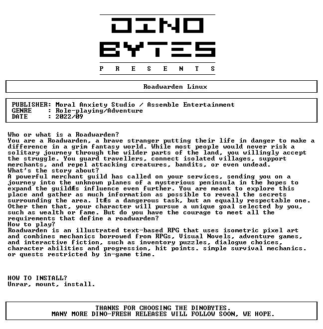 Autor Tema: Roadwarden_Linux-DINOByTES  (Leído 1277 veces)
