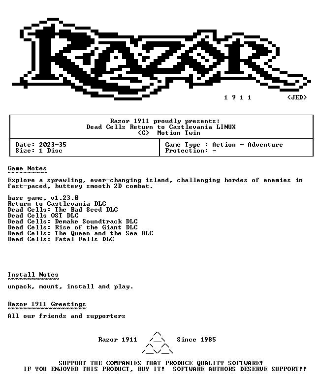 DOWNLOADDead_Cells_Return_to_Castlevania_Linux-Razor1911.7z.001Dead_Cells_Return_to_Castlevania_Linux-Razor1911.7z.002https://www.gog.com/en/game/dead_cells_return_to_castlevaniaNFO