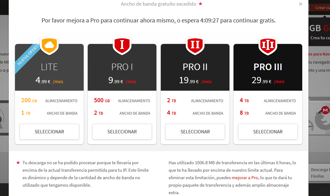 ahora cada cierta cantidad de descarga que haces, mega te dice que usaste el maximo de ancho de banda para descargar y te hace esperar 4 HORAS para seguir descargando o bajar a una velocidad que hasta a la mula le daria risa  :notok: