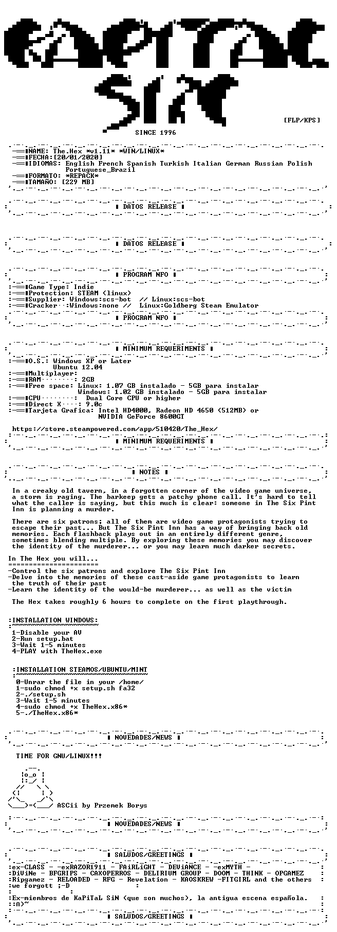 Re:The.Hex *v1.11* *REPACK* *MULTI 9* *WIN/LINUX*