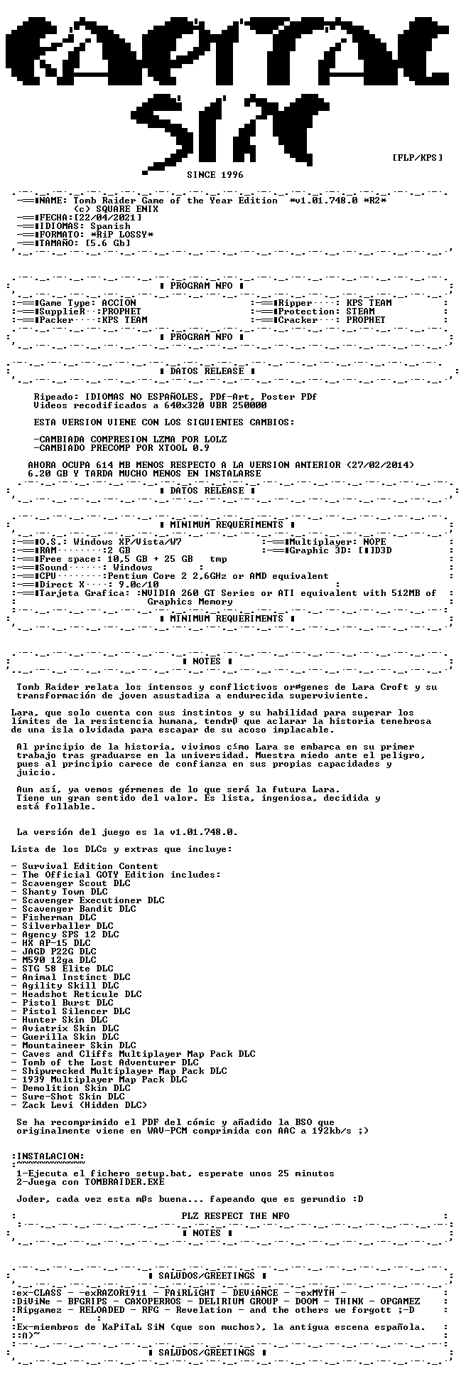 DESCARGAhttps://mirrorace.org/m/5LMmShttps://store.steampowered.com/app/203160/Tomb_Raider/NFO
