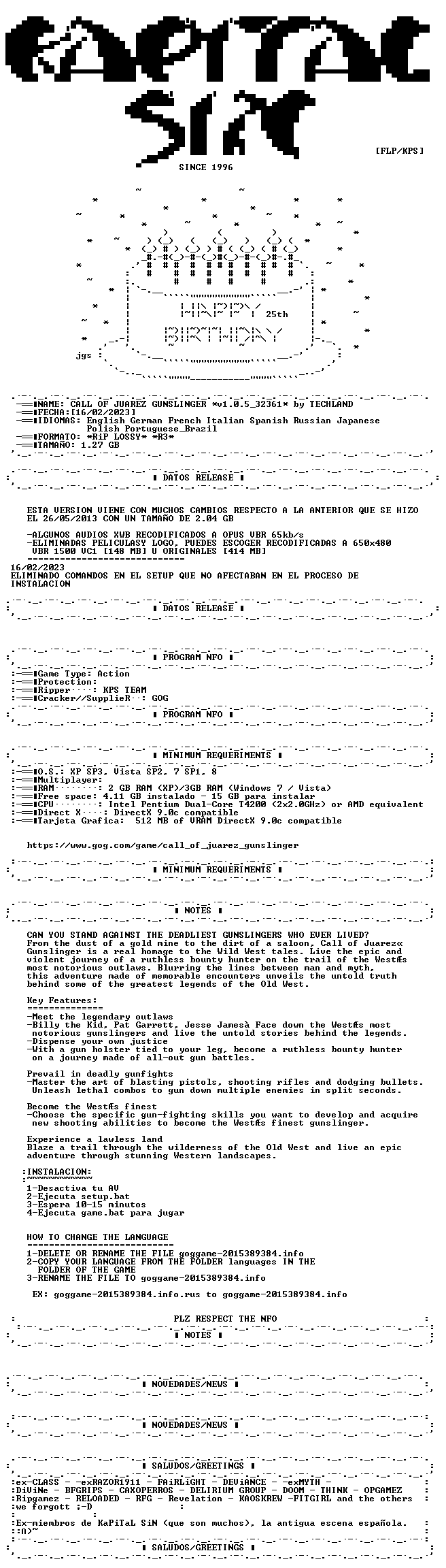 Creado setup nuevo para el kps.call.of.juarez.gunslinger que elimina ciertos pasos del instalador que no son necesarios, el previo funciona sin problemas, si os lo bajasteis no hace falta bajar este nuevo