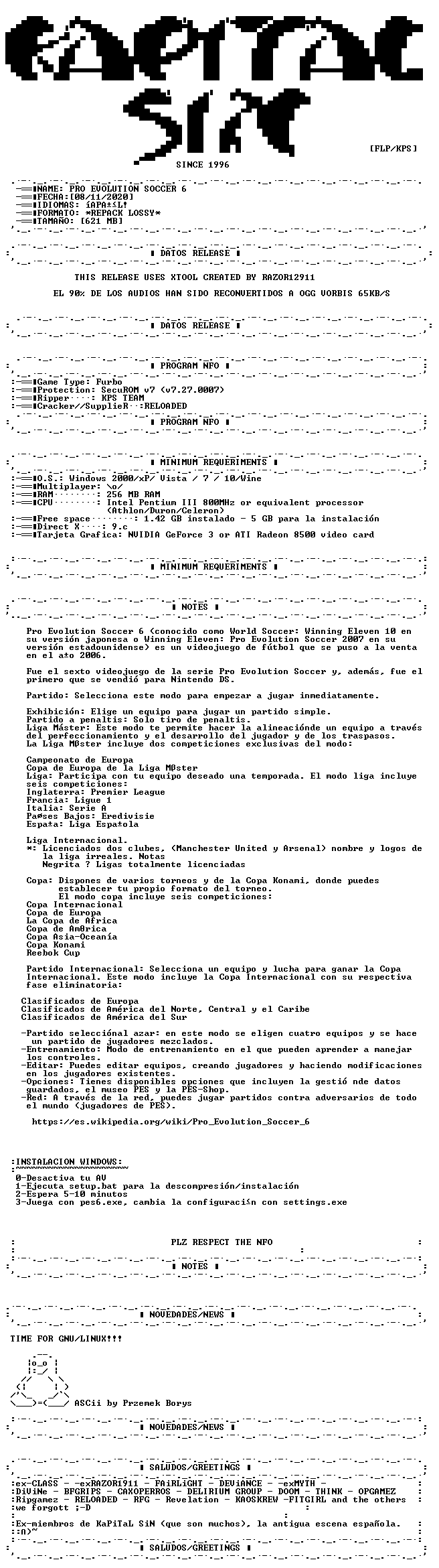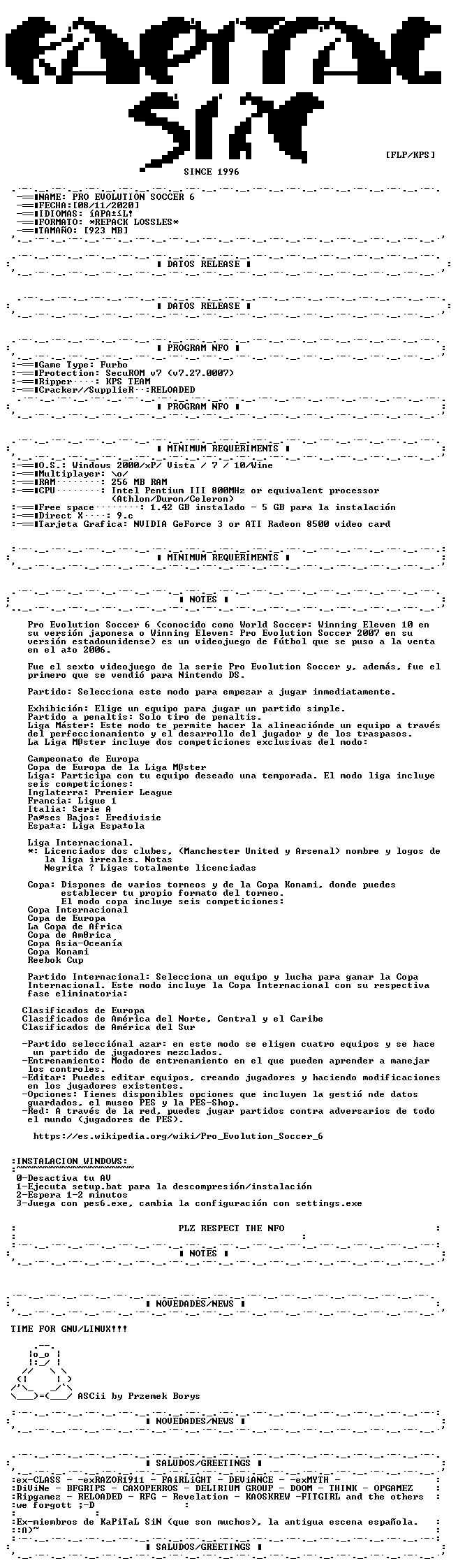 Autor Tema: Pro evolution soccer 6 *SPANISH* *REPACK LOSSY /LOSSLESS*  (Leído 3014 veces)