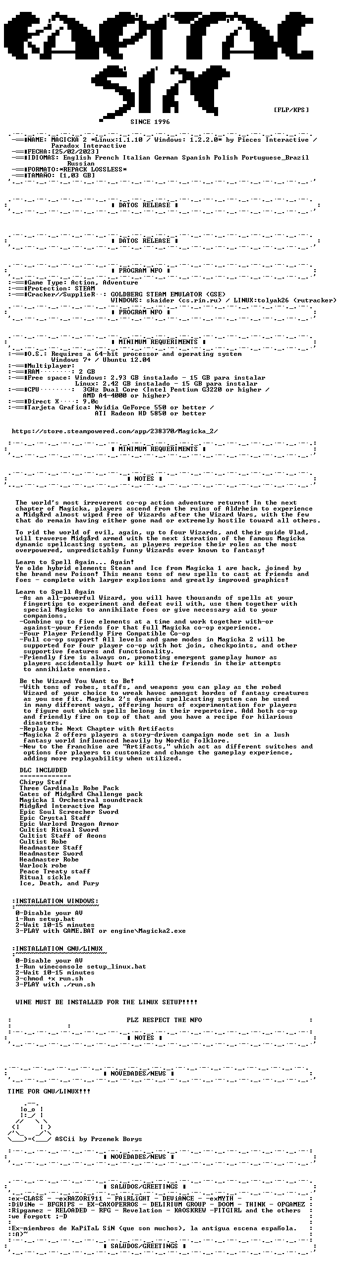 DLC'S: DOWNLOADkps.magicka.2.v1.2.2.0.win.linux.multi8.rarhttps://store.steampowered.com/app/238370/Magicka_2/NFO