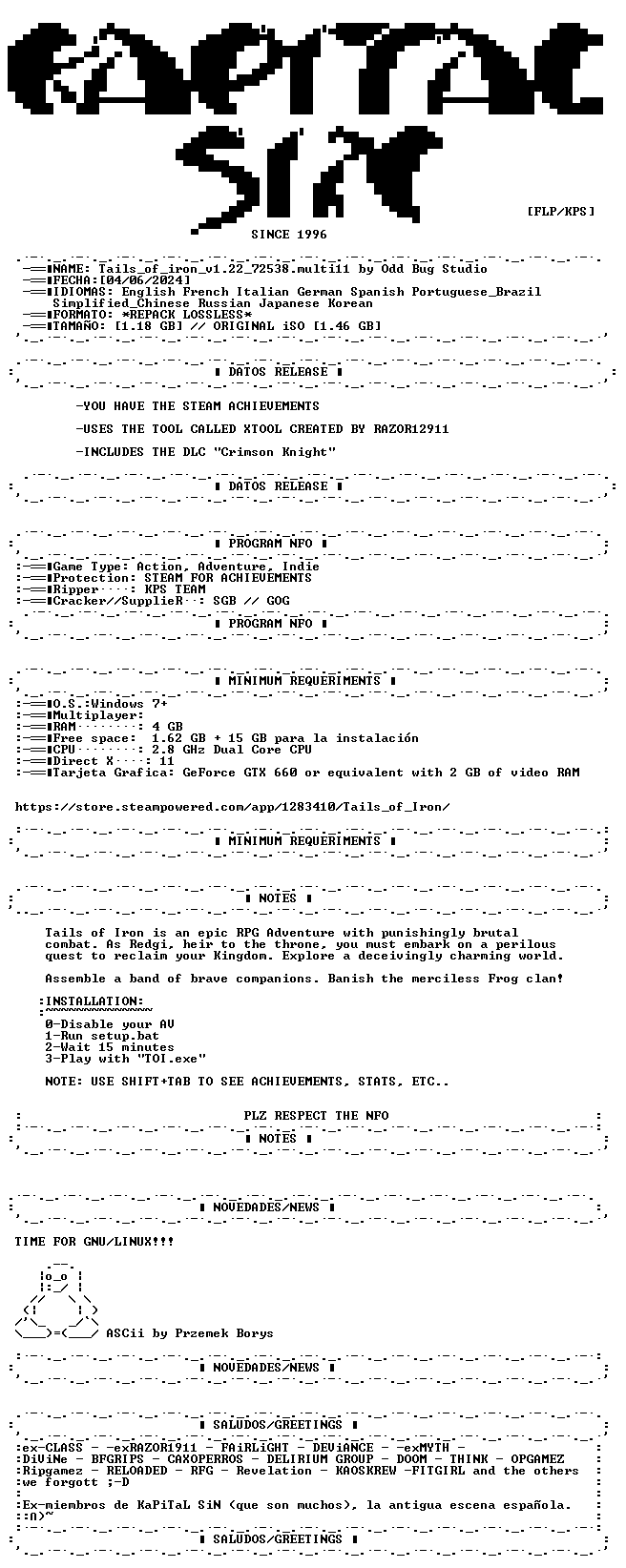 DOWNLOADhttps://buzzheavier.com/f/GP8mz1hKoAA=https://store.steampowered.com/app/1283410/Tails_of_Iron/NFO
