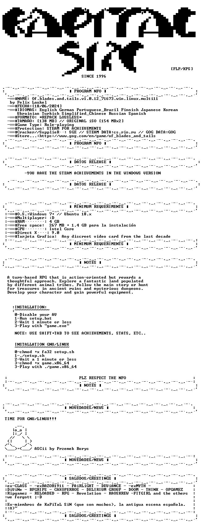 DOWNLOADhttps://buzzheavier.com/f/GQWevakyoAA=https://store.steampowered.com/app/1768780/Of_Blades__Tails/NFO